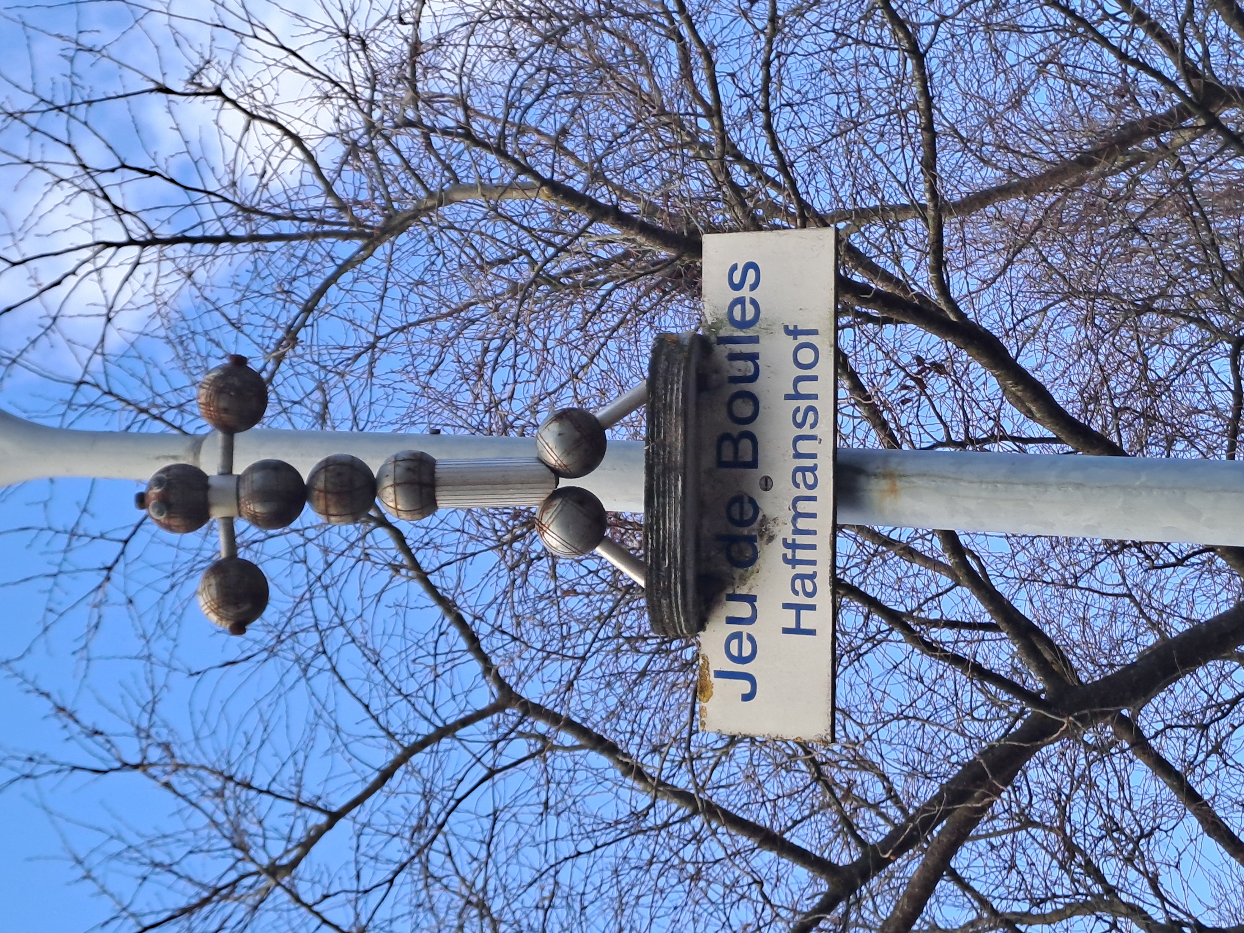 Het "kunstwerk" van de jeu des boules baan (zie foto) heeft dringend een opknapbeurt nodig.